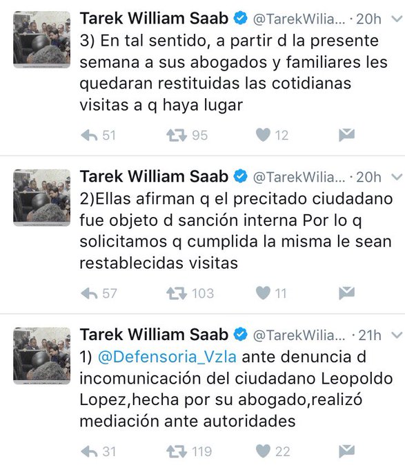 Como un burócrata más, @TarekWiliamSaab actúa como si sanciones contra @leopoldolopez fueran justas y legales. ¿Defensor del Pueblo?